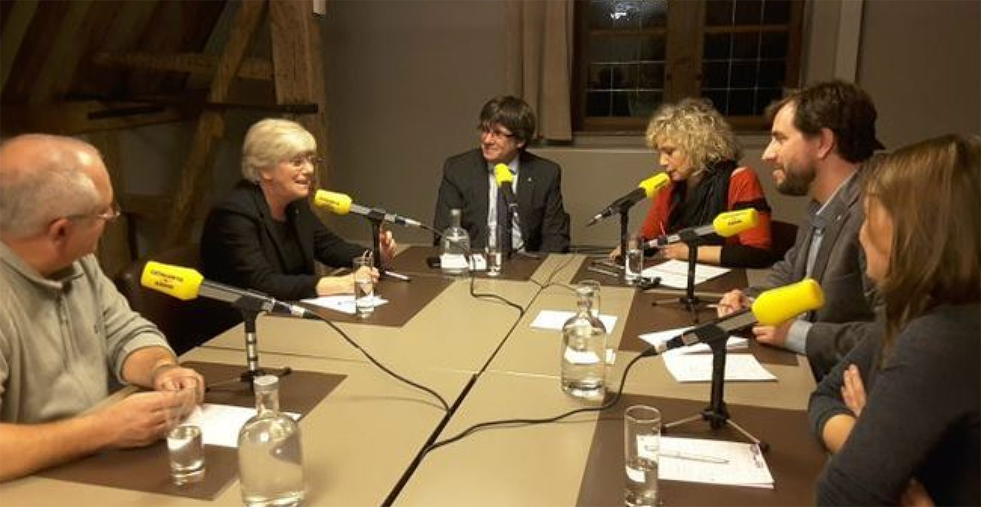 La emisora pública Catalunya Ràdio se vuelca con la campaña electoral de Carles Puigdemont. El programa matinal ha entrevistado al expresidente de la Generalidad y a los cuatro exconsejeros fugados. "Exclusiva", según la conductora del espacio, Mònica Terribas. En la web de la radio se apunta: "Estamos en Bélgica. Hemos venido hasta aquí porque era la única manera de hablar con parte del gobierno que elegisteis en las urnas el 27 de septiembre de 2015 que el gobierno de Rajoy cesó. Las cinco únicas personas de este gobierno que están fuera de la cárcel. Conversamos con ellos ayer por la noche, con los cinco, Carles Puigdemont, Antoni Comín, Clara Ponsatí, Meritxell Serret i Lluís Puig".