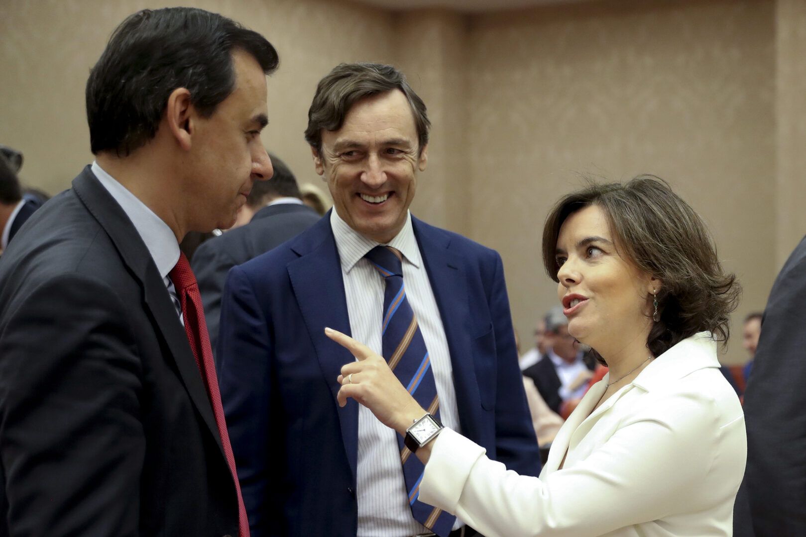 El Grupo Popular avanzó cuál será su actitud ante la comisión sobre el modelo autonómico impulsada por el PSOE, que pretende una reforma de la Carta Magna. Primero, escuchará a los comparecientes para, a renglón seguido, hacer un diagnóstico sobre lo que funciona y lo que hay que corregir. Si bien Rafael Hernando ya avisó de que no ve mucho que cambiar. "No he visto problemas en la Constitución, he visto soluciones", zanjó, y citó expresamente el artículo 155. Mientras, el Gobierno insistió en que, en caso de "más lío que soluciones", lo idóneo sería no abrir ese melón.