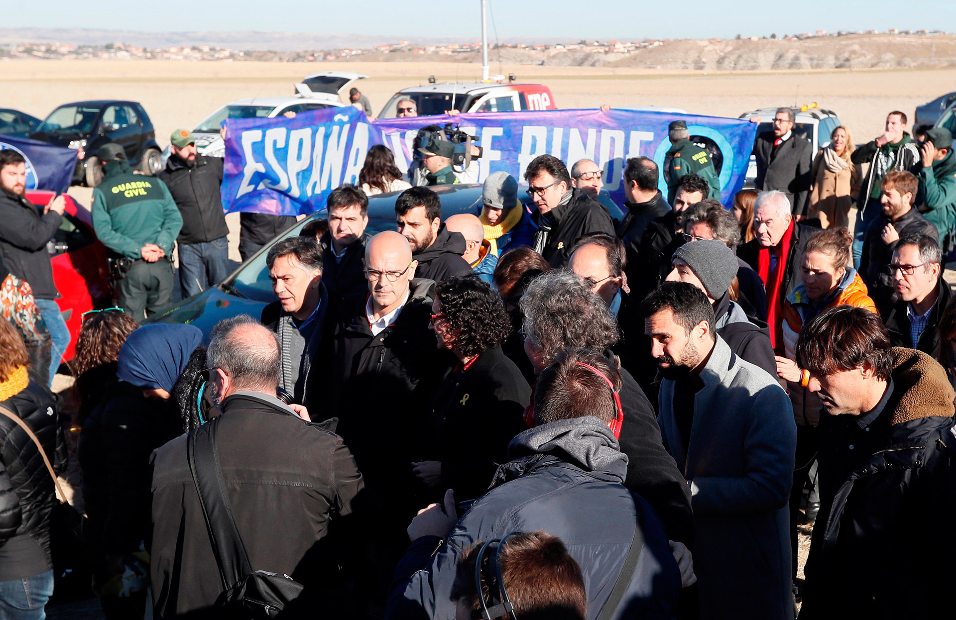 ERC ha cerrado su campaña electoral a escasos metros de la prisión de Estremera (Madrid) con un acto reivindicativo que ha tratado de boicotear un grupo de la organización ultraderechista Hogar Social, con gritos como "Cataluña es España", "Puigdemont a prisión" o "¿Dónde está el osito?".