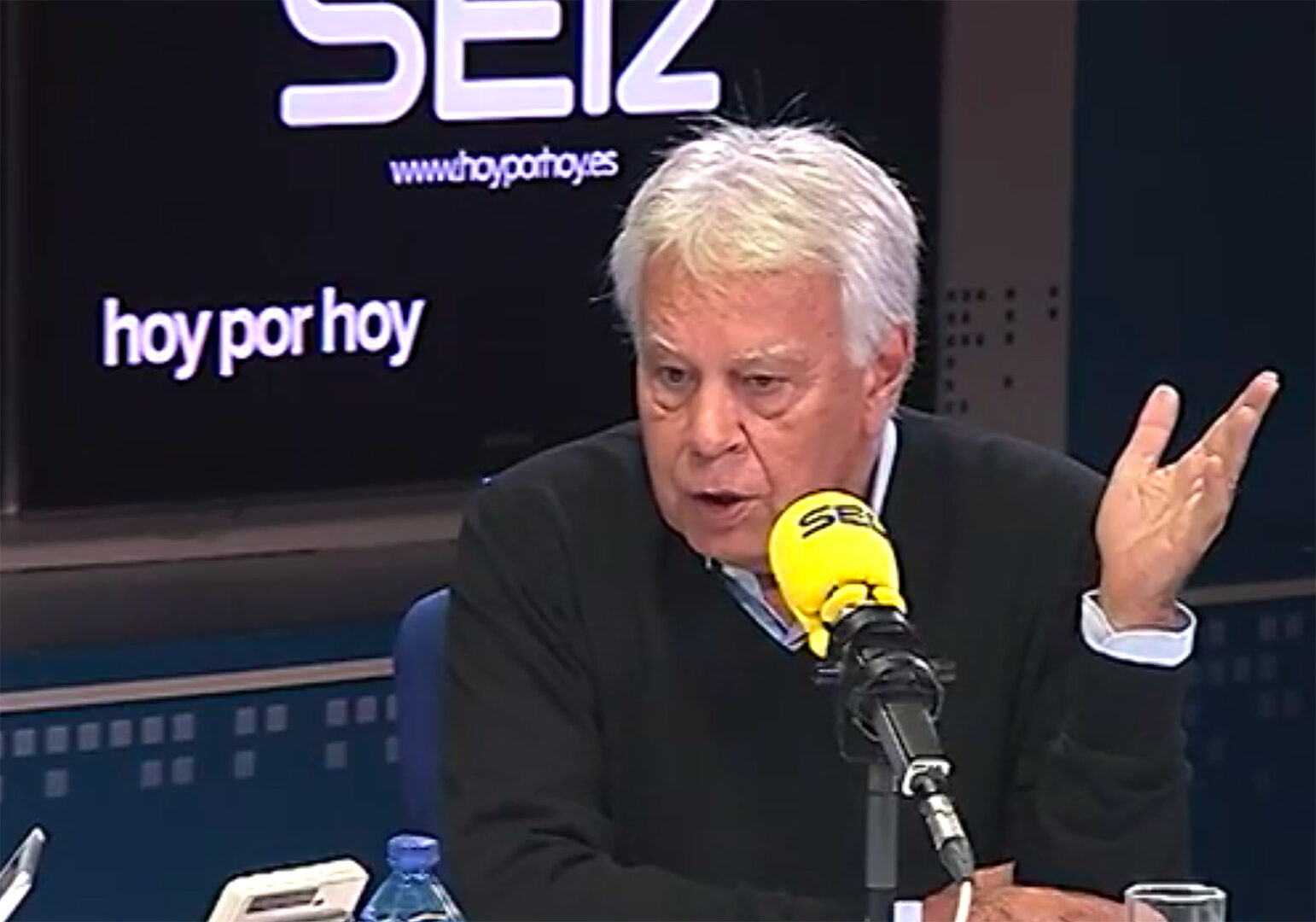 Felipe González ha estado este martes en el programa matinal de la SER entrevistado por Pepa Bueno y analizando la situación política en España y particularmente en Cataluña. El histórico líder socialista ha sido muy crítico con el separatismo catalán y sobre la llamada investidura telemática, que considera un disparate: "¿Podríamos de verdad proponer que un elefante fuese presidente?, porque no lo impide el reglamento…", ha llegado a decir.