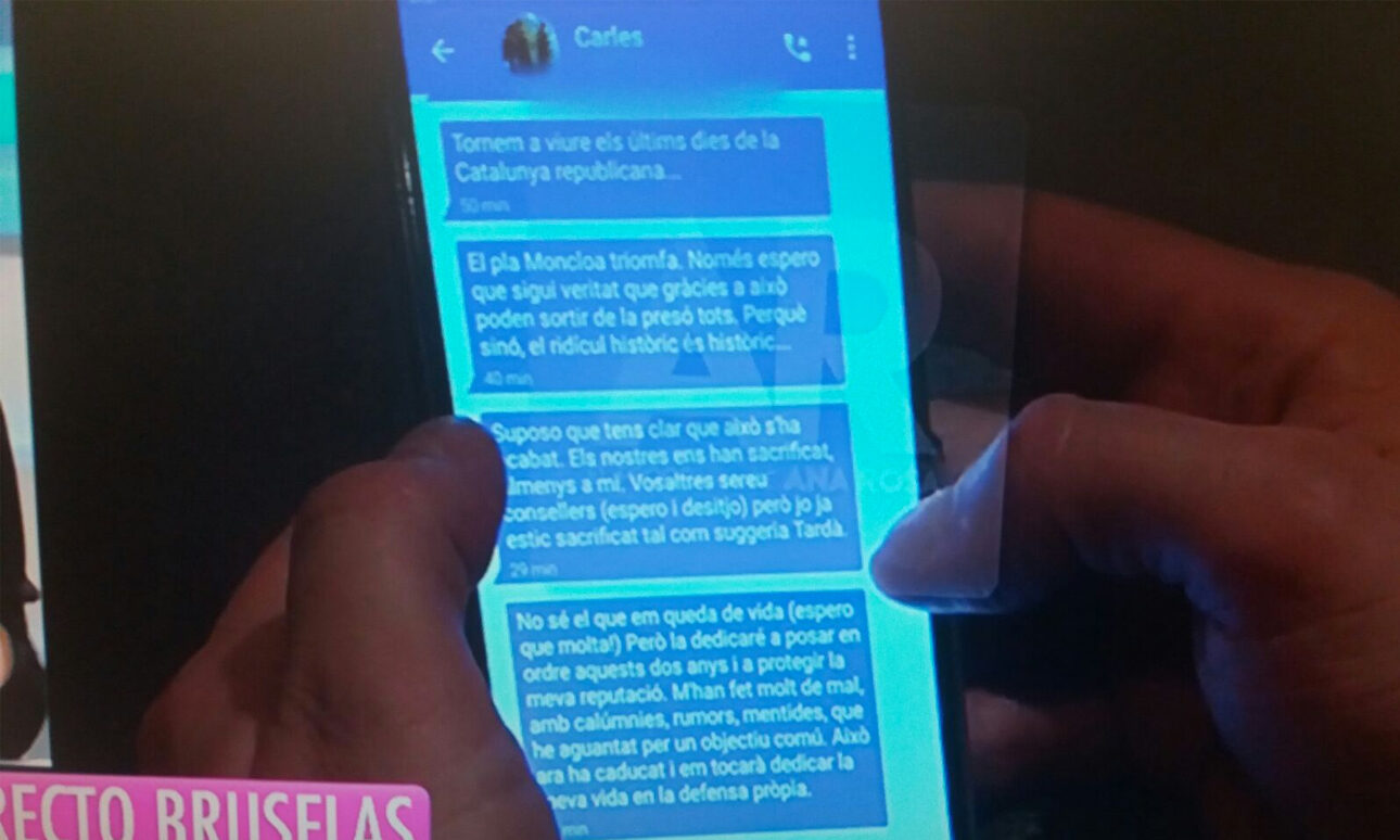 Según ha informado en exclusiva El Programa de Ana Rosade Telecinco, esa serie de mensajes se los envió este martes el expresidente catalán a Toni Comín, exconsejero de Sanidad, que como el propio Puigdemont se encuentra huido en Bélgica.