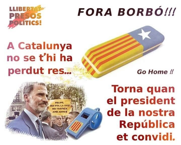 "En Cataluña no se te ha perdido nada; vuelve cuando te invite el presidente de nuestra república" reza el texto de un pasquín que anima a las protestas. En diversos mensajes en Twitter, Facebook y aplicaciones de mensajería, usuarios independentistas animan a rodear el Palau de la Música a partir de las siete de la tarde "para desobedecer y demostrar que un Rey violento y opresor no es bienvenido en nuestra república".
