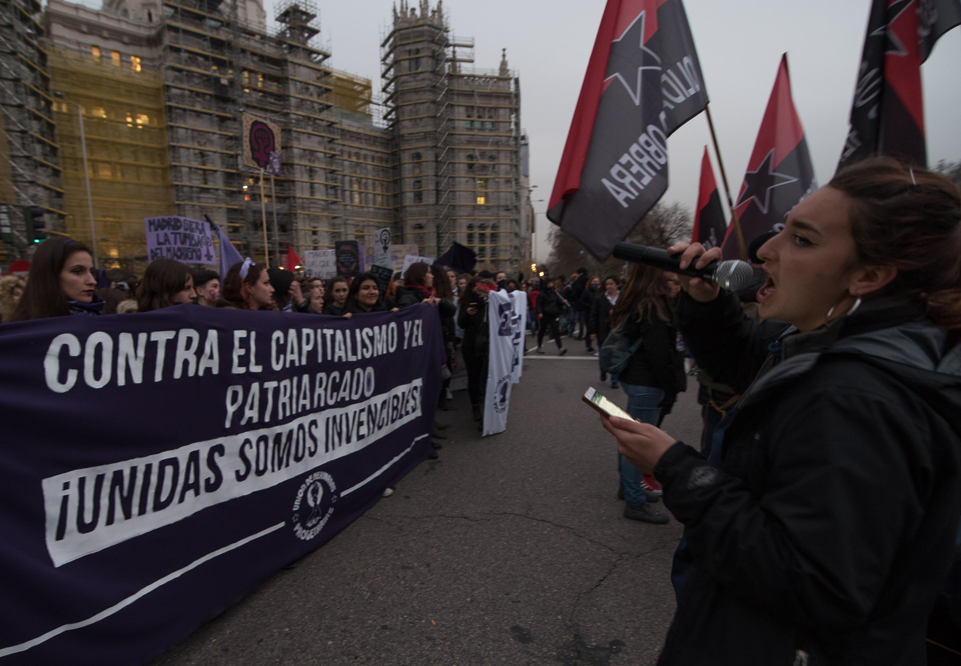 Nada más empezar vemos una pancarta que nos demuestra que, efectivamente, la manifestación tiene más que ver con la política de ultraizquierda que con los derechos de la mujer.