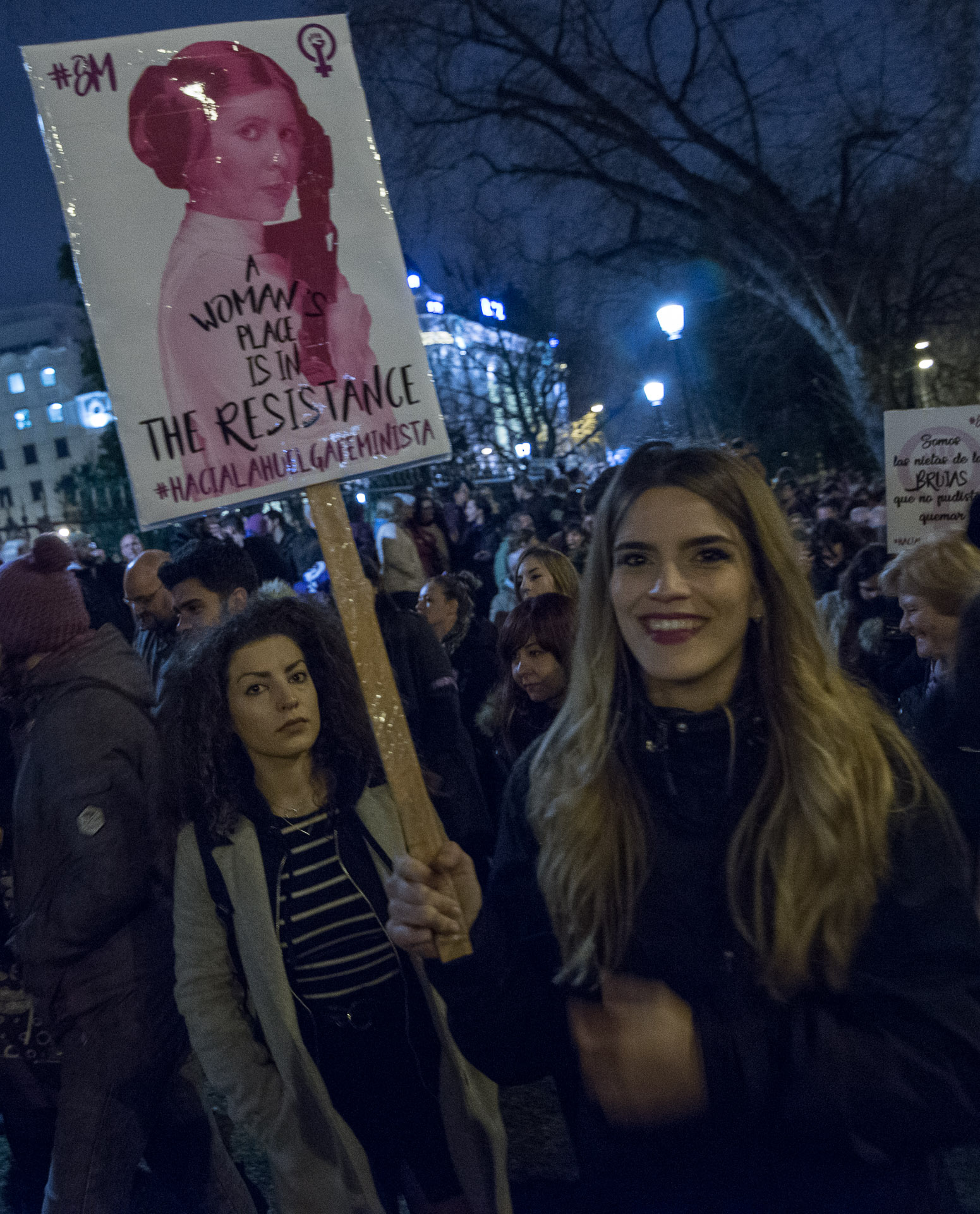 Y para terminar con un poco de mejor humor, una pancarta simpática con la princesa Leia.