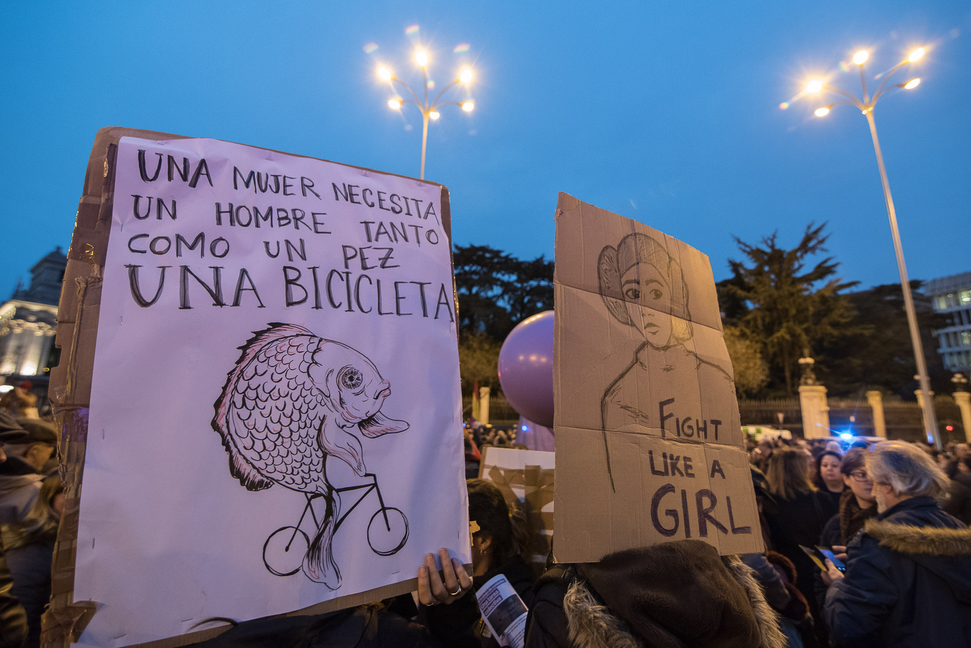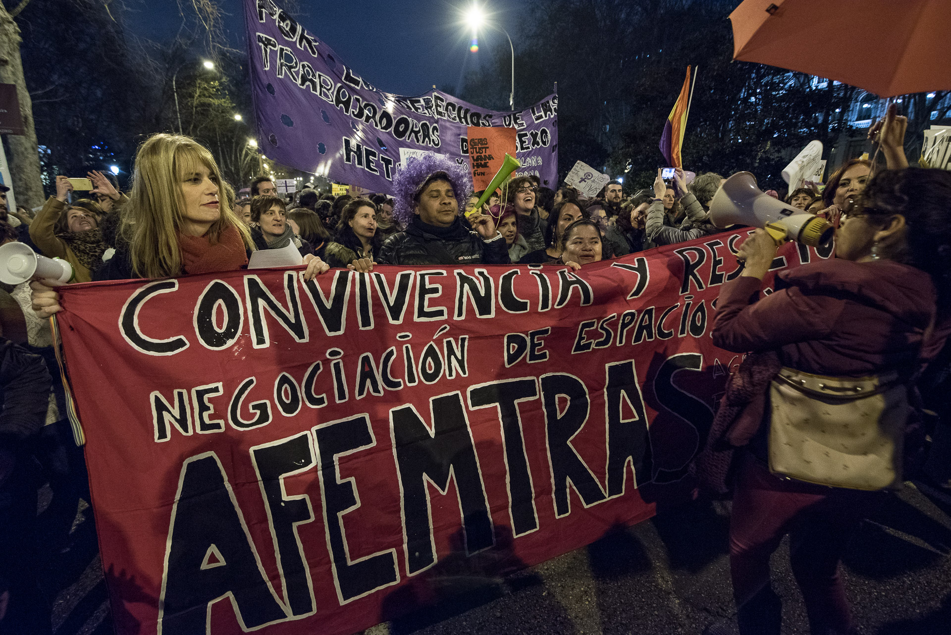 Mientras unos metros más atrás un grupo de prostitutas se manifestaba para tener derechos. Y probablemente eran las mujeres con más motivos para salir a la calle de todas las asistentes.
