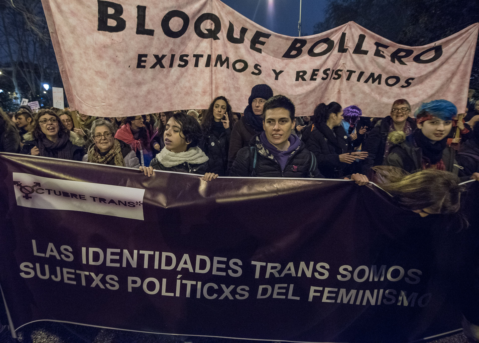 El "bloque bollero" con una extraña pancarta sobre las "identidades trans".