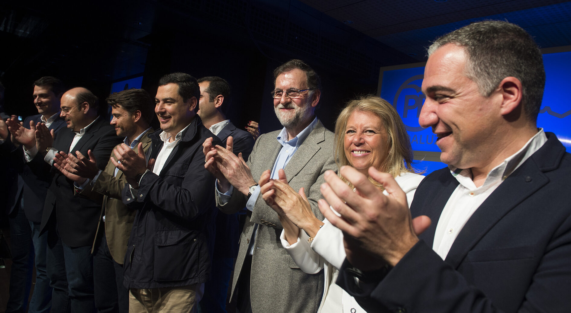 El presidente se hizo la fotografía con los nuevos candidatos del PP a las capitales andaluzas. Renovación prácticamente total. Francisco de la Torre, alcalde de Málaga, será el único que repita respecto al cartel electoral de 2015, ya que los regidores y candidatos de Almería, Ramón Fernández-Pacheco, y de Jaén, Francisco Javier Márquez, llegaron a la alcaldía con la legislatura empezada. El resto de elegidos son Beltrán Pérez en Sevilla; Sebastián Pérez en Granada; José María Bellido en Córdoba; Juan José Ortiz en Cádiz; y Pilar Marín en Huelva.