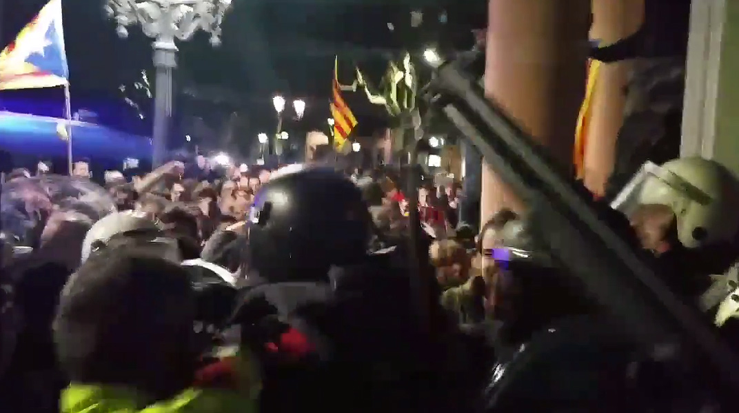Ante la insistencia y violencia de los manifestantes varios Mossos tuvieron que realizar salvas al aire para disuadir al grupo.
