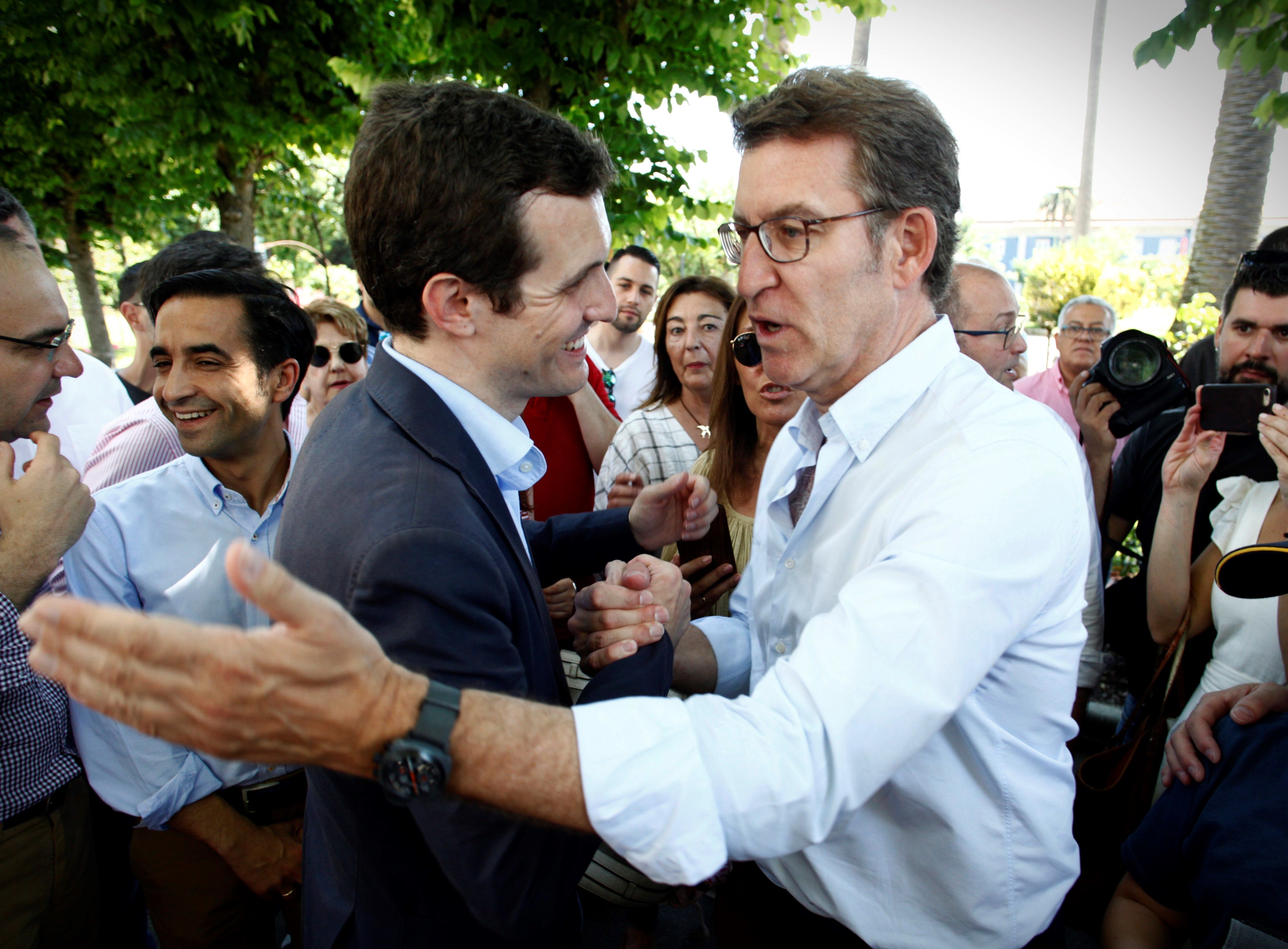 La fuerte irrupción de Casado provocó la inquietud de los entornos de Santamaría y Cospedal. El diputado por Ávila se trasladó este sábado a Galicia, donde fue recibido por Feijóo. "Arrímate a él, que es el jefe de las mayorías y te da suerte", le gritó un afiliado, tal y como recoge el diario El País. Casado prometió "menos burocracia e impuestos" y se revolvió ante las dudas sobre sus estudios, que según los suyos estarían alimentadas por sus rivales.
