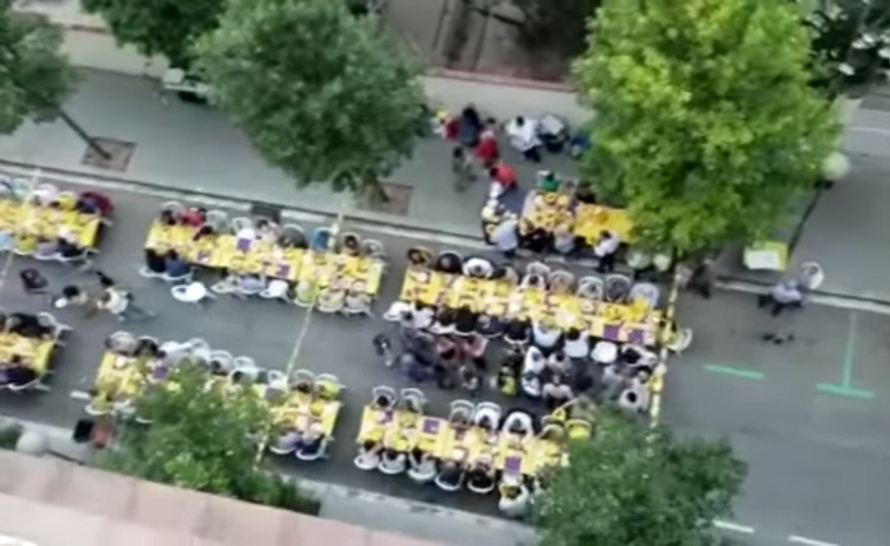 En un vídeo publicado por el portal Dolça Catalunya se muestra la contestación de varios vecinos a la particular celebración, con motivos independentistas, de una cena al aire libre donde los lazos amarillos volvieron a estar presentes.