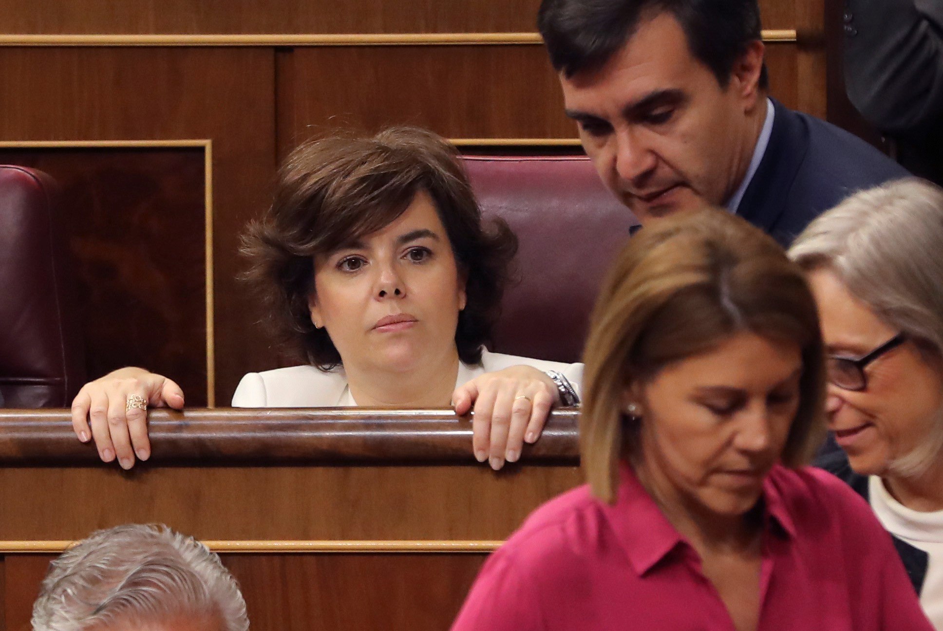 La contundencia de Casado pareció unir a sus rivales, que optaron por no entrar públicamente al trapo. Según la secretaria general, su directriz siempre ha sido no "tensionar". "No voy a entrar en reproches", añadió, aunque en días anteriores sí que le mandó algún recado. Mismo mensaje ofreció Santamaría, aunque dejó entrever su enfado por sus críticas en relación a Cataluña. "Algunos llevamos en el currículum tener una querella criminal de los independentistas sencillamente por defender la unidad de España", espetó. Ninguna entró a valorar sus propuestas en página económica.