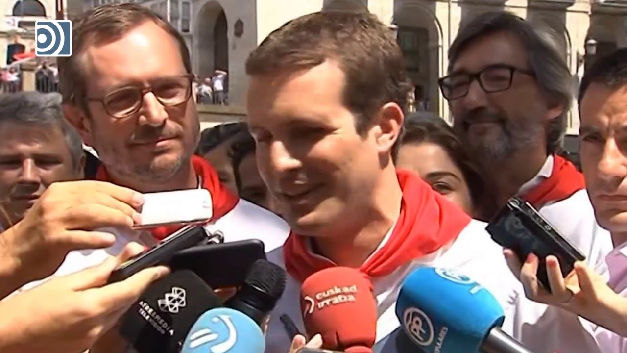 Declaraciones del presidente del PP, Pablo Casado, quien ha participado en un acto celebrado en Vitoria en el que varias decenas de personas le han abucheado, le han llamado "terrorista" y le han lanzado reproches alusivos a las presuntas irregularidades en su máster de Derecho Autonómico.