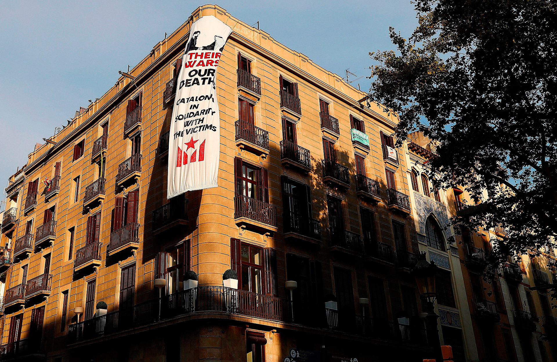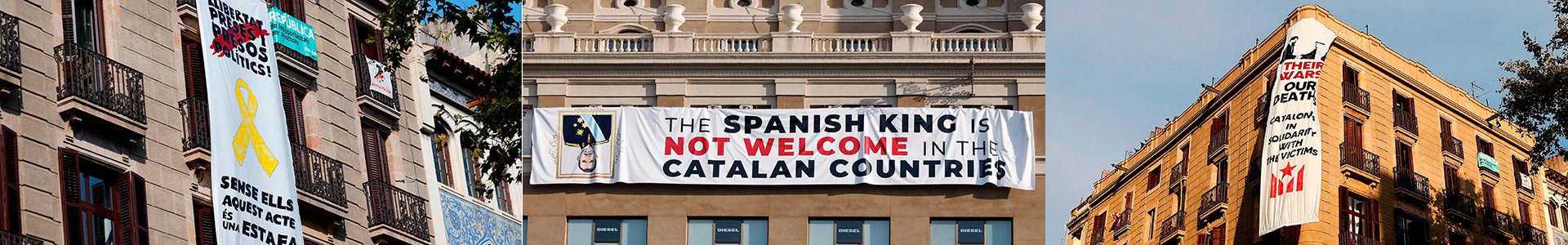 Pancartas y carteles nacionalistas que han jalonado los actos de homenaje a las víctimas de los atentados de Barcelona y Cambrils en su primer aniversario.