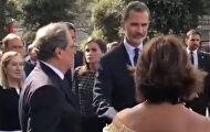 El momento del saludo | Imagen TV Torra enseña al Rey a la esposa del preso Forn, otra 'víctima' Pablo Planas (Barcelona) La pancarta contra el Rey puso en jaque la seguridad de los asistentes a los actos del 17-A
