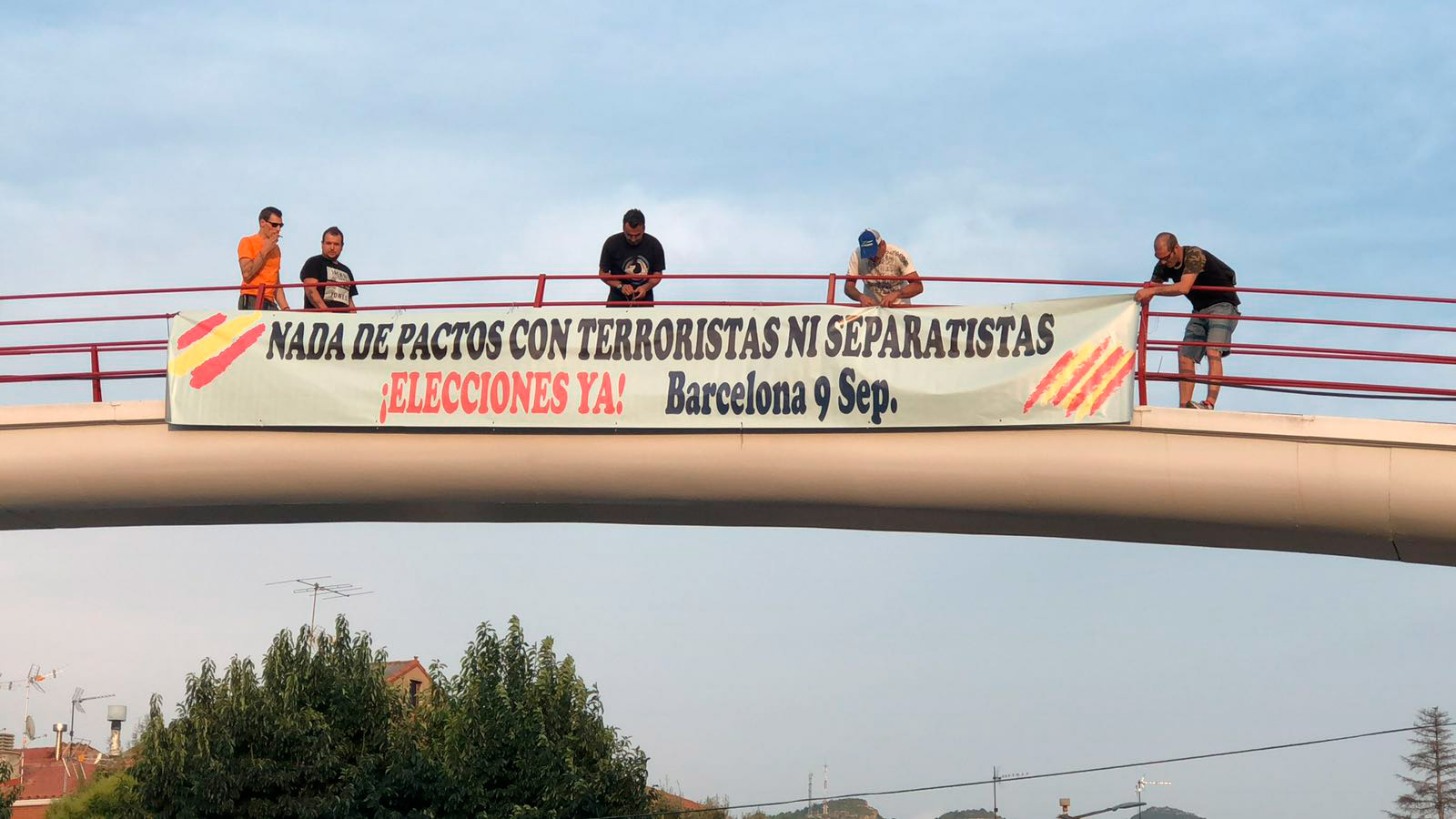 Tras varias semanas en las que voluntarios habían colgado banderas españolas y pancartas antiseparatistas en puentes de Cataluña, este viernes se están viendo increpados por nacionalistas que no quieren permitirles expresar su opinión.