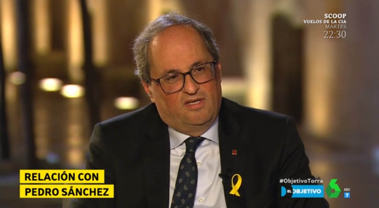 Habría que bucear mucho en los rincones más sórdidos de la Hemeroteca para encontrar un espectáculo tan grotesco como el de Quim Torra balbuceando consignas ante la periodista de La Sexta. Y eso que las preguntas no fueron, ni mucho menos, lo comprometidas que podrían haberlo sido dado lo que viene sucediendo en Cataluña en el último año. Porque Ana Pastor no entró en el fondo de las profundas cuestiones que se dirimen en el actual contexto secesionista, en el que unas autoridades del Estado actúan en abierta rebeldía constitucional con el consentimiento del Gobierno. Fueron más bien asuntos de mero procedimiento como los pasos a dar para instaurar la república catalana o las medidas concretas que Torra piensa llevar al parlamento regional para sacar de prisión a los golpistas, como vienen prometiendo. En todos los casos, el presidente catalán se limitó a repetir que los catalanes quieren votar sobre la independencia y que los golpistas en la cárcel son presos políticos secuestrados por un Estado opresor.