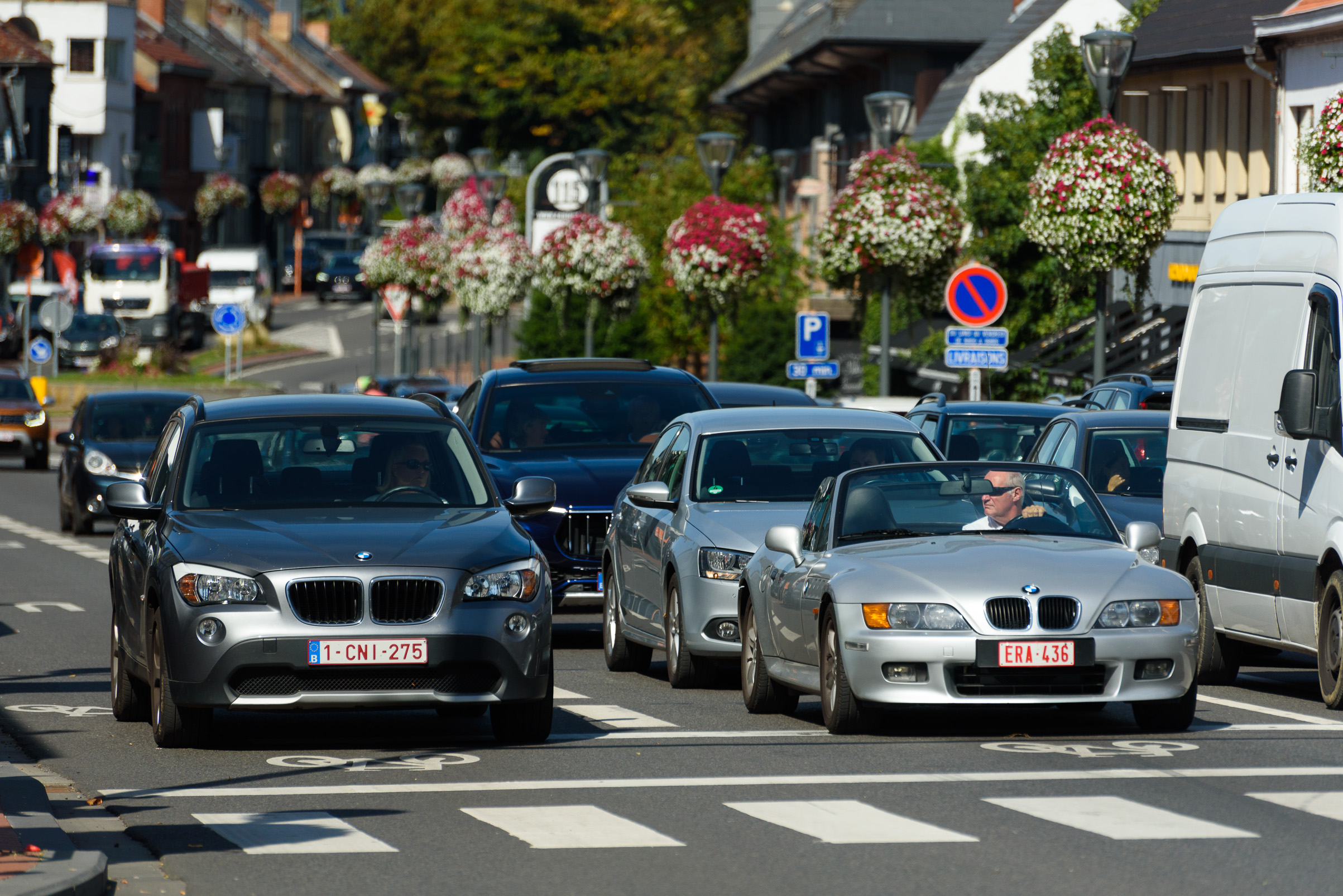 Varios vehículos de alta gama recorren la vía principal de Waterloo, su calle más comercial.