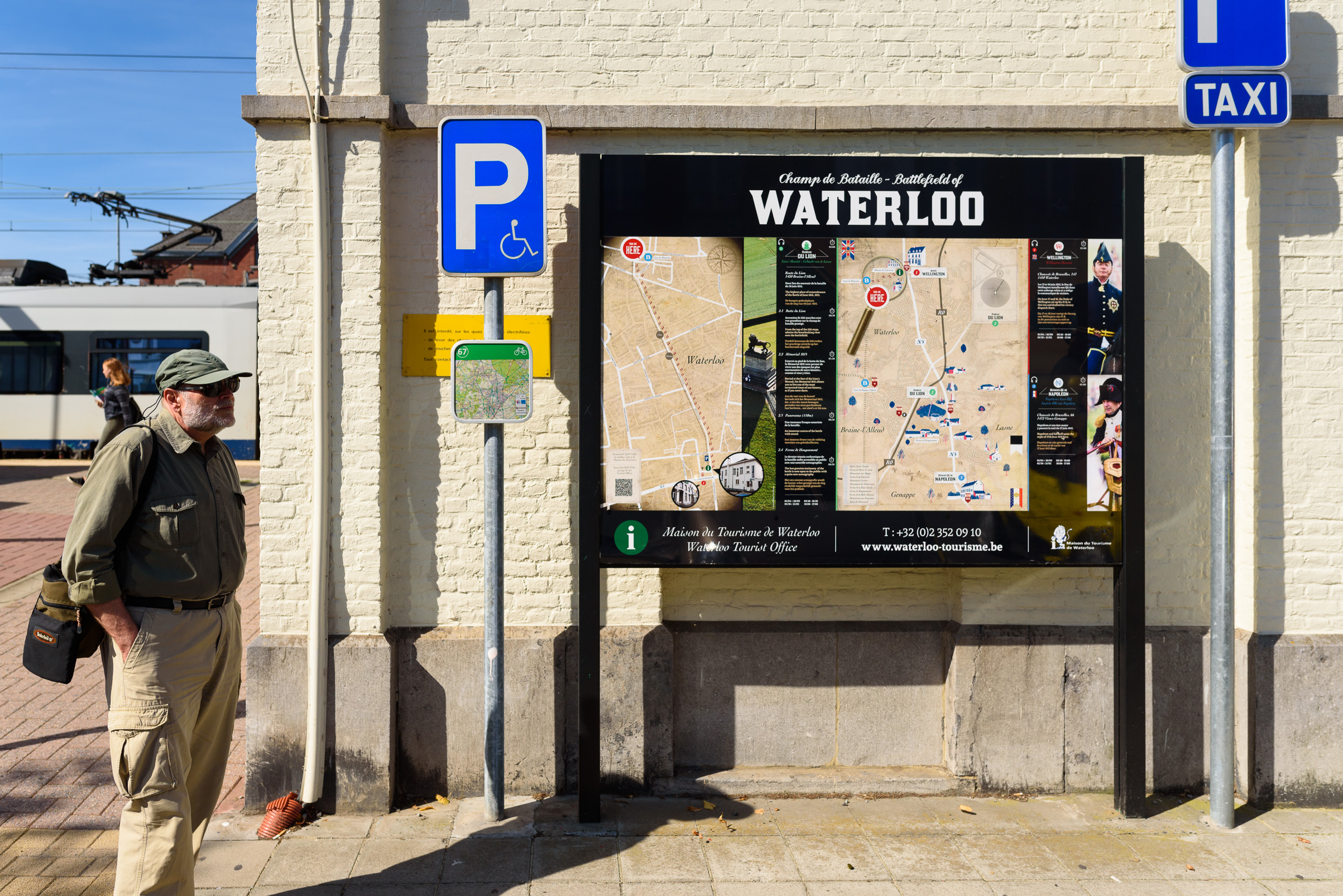 Nada más llegar a Waterloo, en la misma estación de tren, un cartel informa sobre la famosa batalla que se desarrolló muy cerca del lugar.
