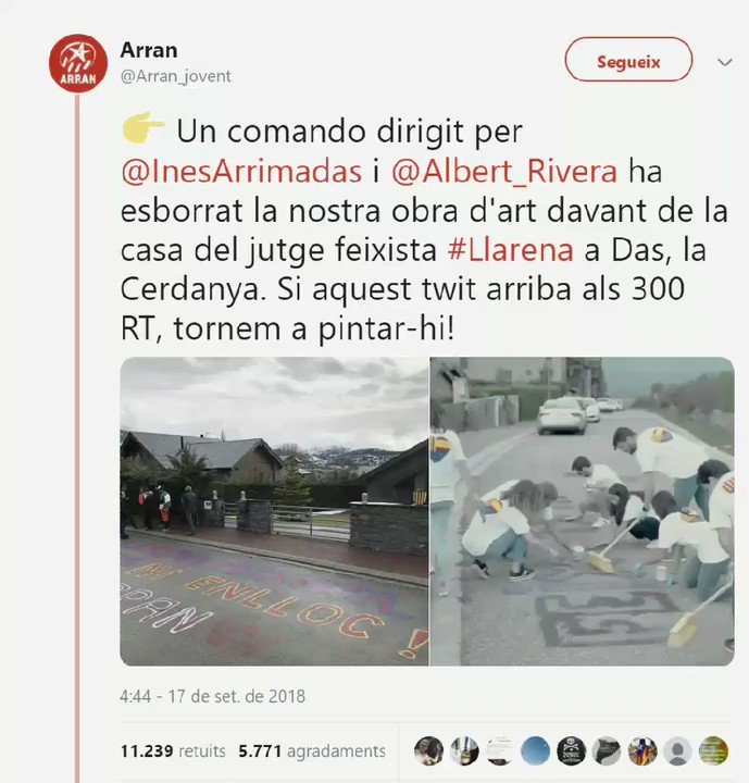 Un grupo de delincuentes de Arran, las juventudes de la CUP, vuelve a ensuciar con pintura la casa de Llarena en Cataluña.