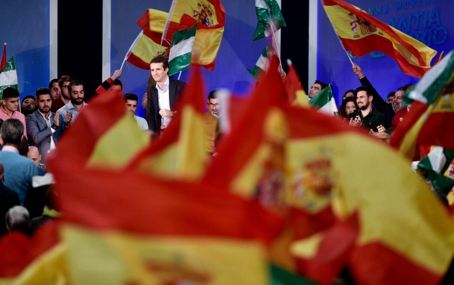 En el reencuentro con Moreno este primer domingo de campaña, Casado tiró de firmeza –asemejó a los independentistas radicales con los nazis– y puso en la diana a Díaz, aunque sin olvidarse de Sánchez. Sobre la primera, denunció su "arrogancia y prepotencia" al pensar que "al PSOE le pertenece esta tierra". Y, con la bandera regional en mano, se preguntó si "Más Andalucía" –el lema de la campaña socialista– significa tener el paro más alto de Europa o gastar el dinero público en "prostíbulos y cocaína". "Eso no es más Andalucía, es más socialismo corrupto e irresponsable y hay que acabar con él", sentenció.