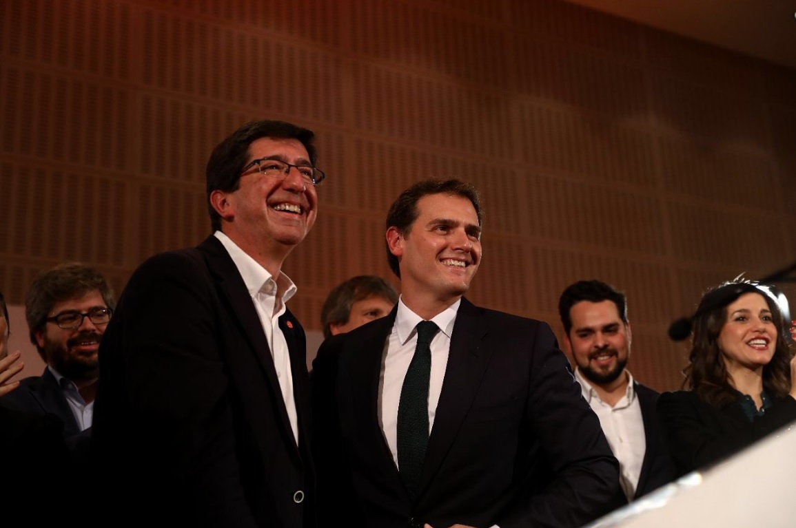 Juan Marín y Albert Rivera han valorado los resultados de las elecciones andaluzas en las que han quedado en tercera posición y han pedido un pacto con PSOE y PP para dejar fuera a VOX.