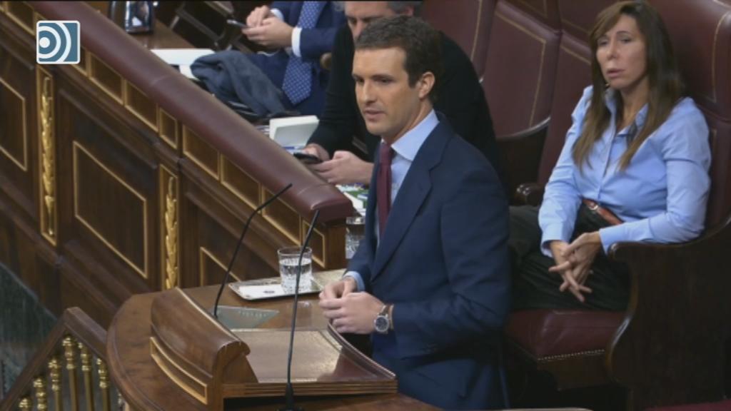 Pablo Casado denunció que el presidente no ha anunciado "nada" para frenar el desafío separatista, y exigió la aplicación ya del artículo 155 de la Constitución.