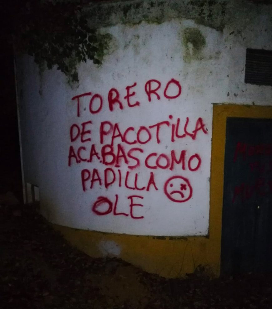 Varias pintadas con insultos y amenazas han aparecido esta noche en la finca que posee el torero Morante de la Puebla en la localidad de Puebla del Río (Sevilla).