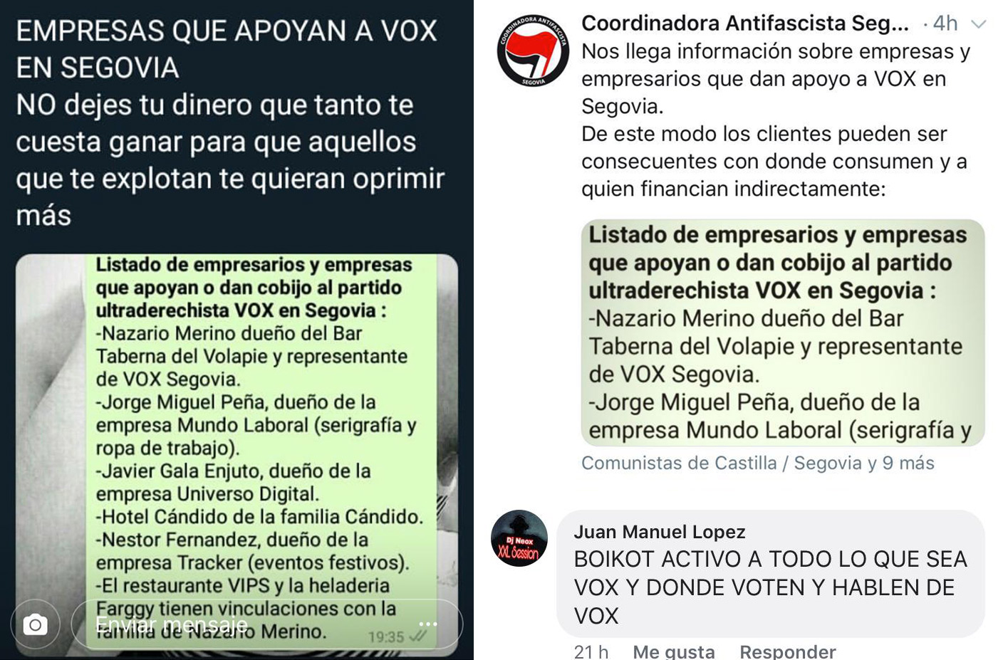 Al día siguiente del evento, celebrado en el Hotel Cándido, el grupo Anticapitalistas de Segovia difundió en redes sociales un listado, con nombres y apellidos, de algunos de los asistentes que tienen locales en la ciudad para pedir a los clientes "ser consecuentes con dónde consumen" porque con su dinero "se financia directa o indirectamente al fascismo".