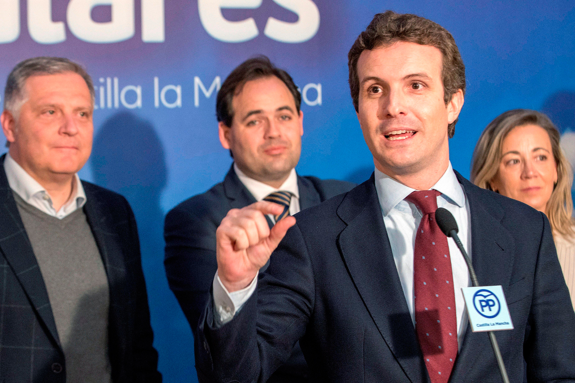 El líder de la oposición canceló su viaje a Atenas para participar este jueves en una reunión del grupo popular europeo. En su opinión, la situación es tan grave que debe quedarse en España para coordinara la respuesta al Ejecutivo. Tras comparecer en una rueda de prensa en Cuenca, se puso en contacto con Albert Rivera y con Santiago Abascal para "ir juntos" en la protesta del domingo.