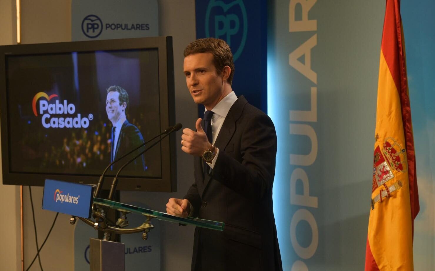 Pablo Casado se ve como el próximo inquilino del palacio de la Moncloa. Cree que es su momento a pesar de la fragmentación del voto de centroderecha. "Salimos a ganar y tenemos un punto de partida muy positivo: somos el partido que puede pactar a derecha e izquierda sin renunciar a sus principios", destacó, después de que Pedro Sánchez confirmara que el 28 de abril habrá elecciones generales. Según sus encuestas, ya supera por dos décimas al PSOE y está a gran distancia de Ciudadanos. "O Frente Popular o PP", resumió, avanzando su eslogan de campaña.