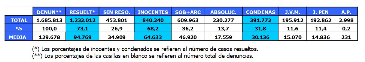 - Y el 31,8% restante son sentencias condenatorias tras su enjuiciamiento.
