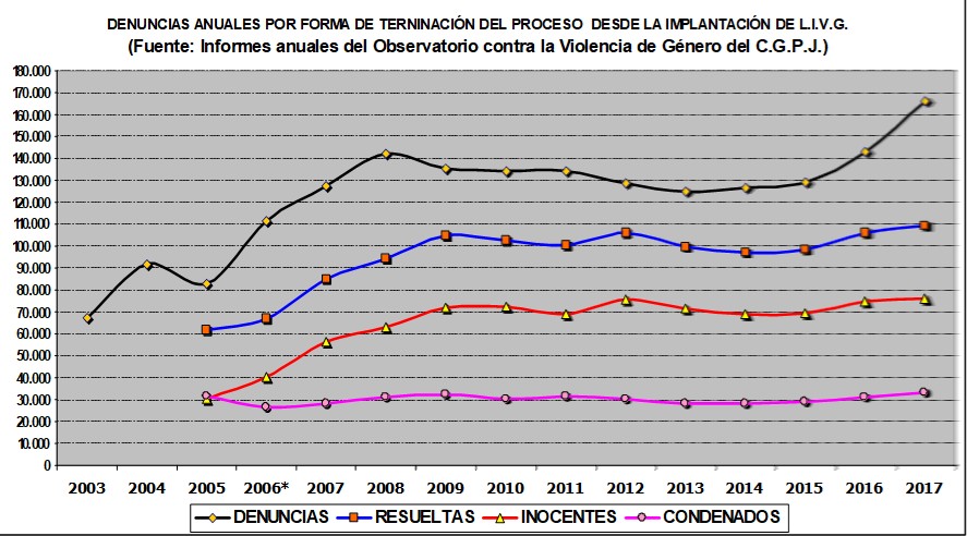 Así pues, según se desprende de las estadísticas oficiales, para lo único que ha servido la Ley de Violencia de Género es para disparar las denuncias, ya que su aplicación no ha logrado reducir la incidencia de este problema (las condenas se mantienen estables) ni el número de víctimas mortales.