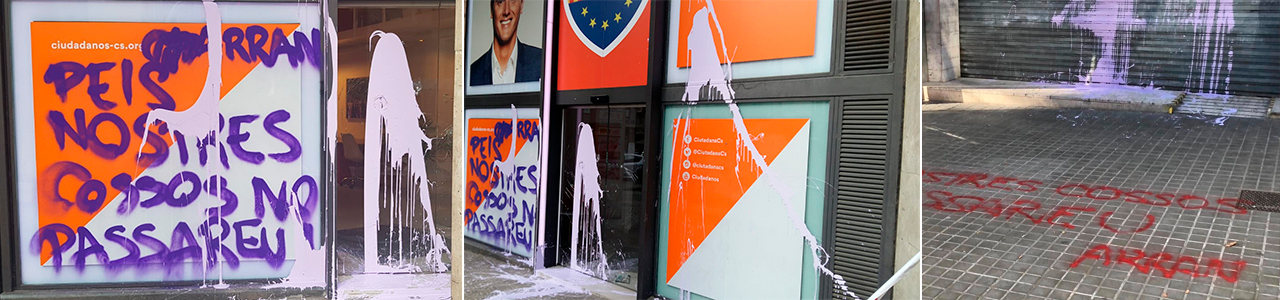 Los cachorros de la CUP destrozan las sedes de Ciudadanos en Barcelona
