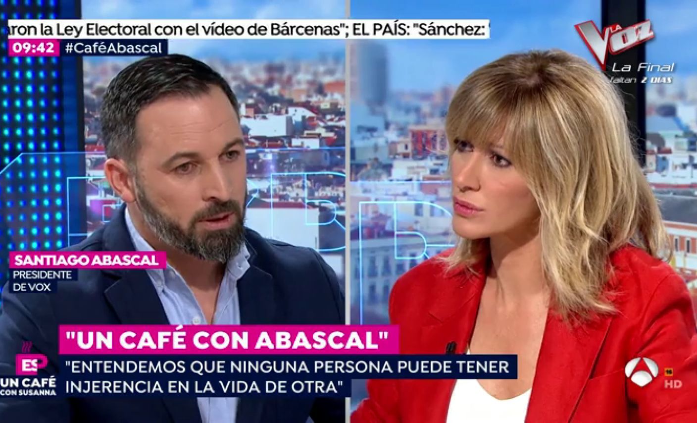 "Tu cuerpo es tuyo pero el que llevas dentro no", ha respondido a Susana Griso ante la insistencia de la presentadora que le preguntaba sobre la posibilidad de encarcelar a quienes abortan. "No estamos en el debate de la cárcel", se ha quejado Abascal por lo que considera una "caricatura" de su mensaje advirtiendo de que estamos ante "un debate muy delicado".