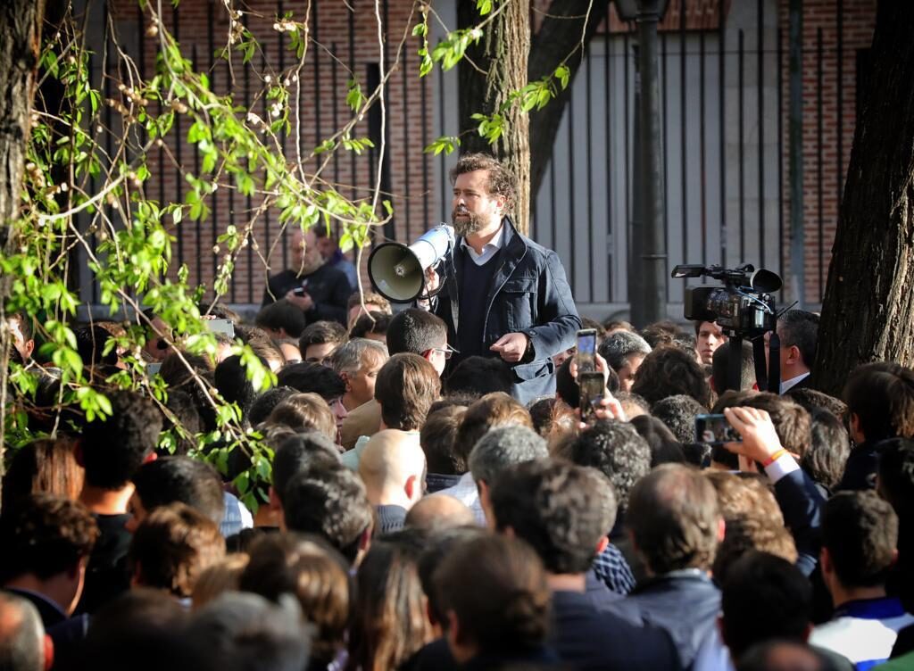El vicesecretario de relaciones internacionales de Vox, Iván Espinosa de los Monteros, improvisó ayer un mitin ante cientos de personas reunidas frente a las puertas de la Universidad ICADE, después de que el centro cancelara una charla que tenía previsto dar asegurando que por ser dirigente político y encontrarnos en campaña electoral, no consideraba apropiado ceder su espacio.