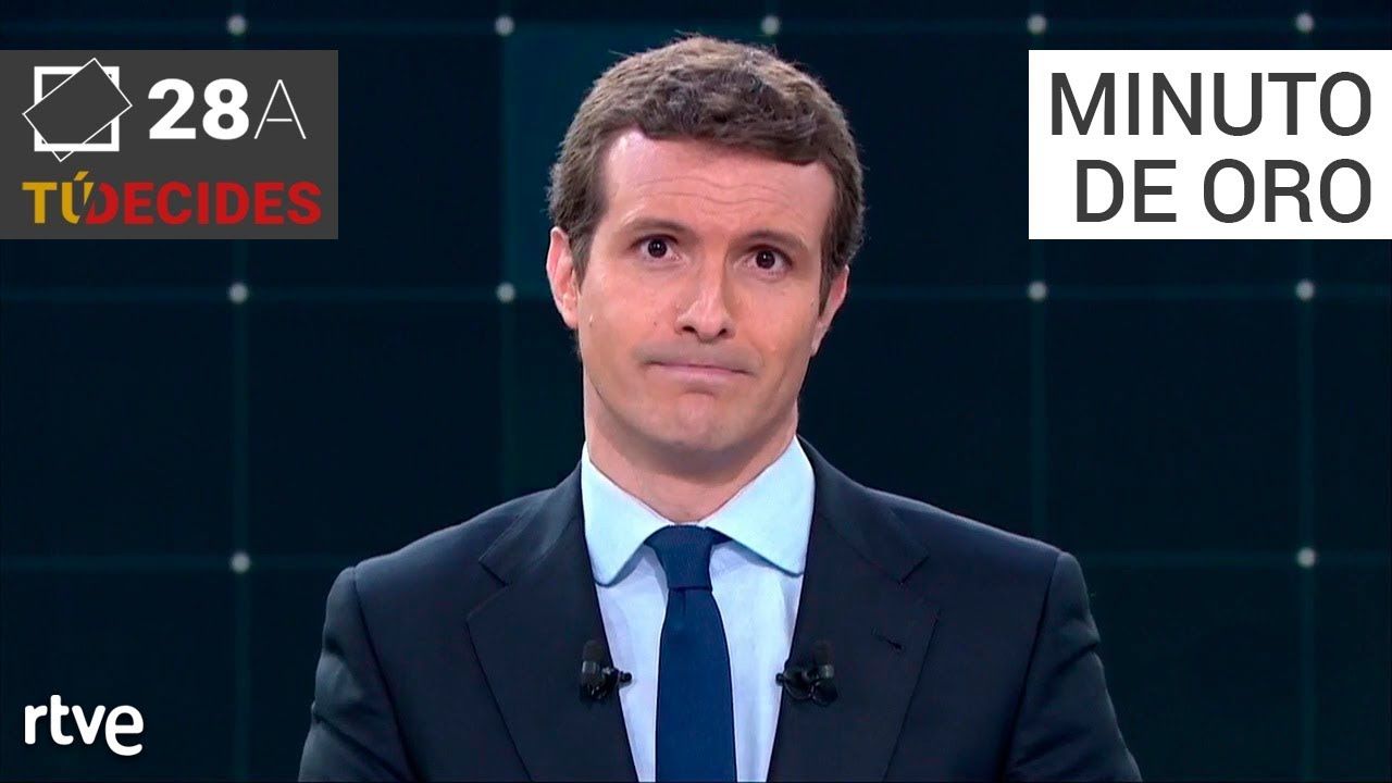 El minuto de oro durante el primer debate electoral a cuatro emitido en TVE del líder del Partido Popular, Pablo Casado.