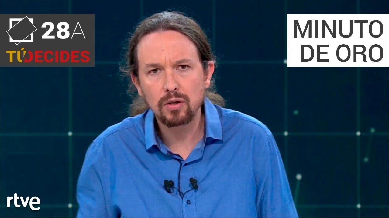 El minuto de oro durante el primer debate electoral a cuatro emitido en TVE del líder del Unidas Podemos, Pablo Iglesias.