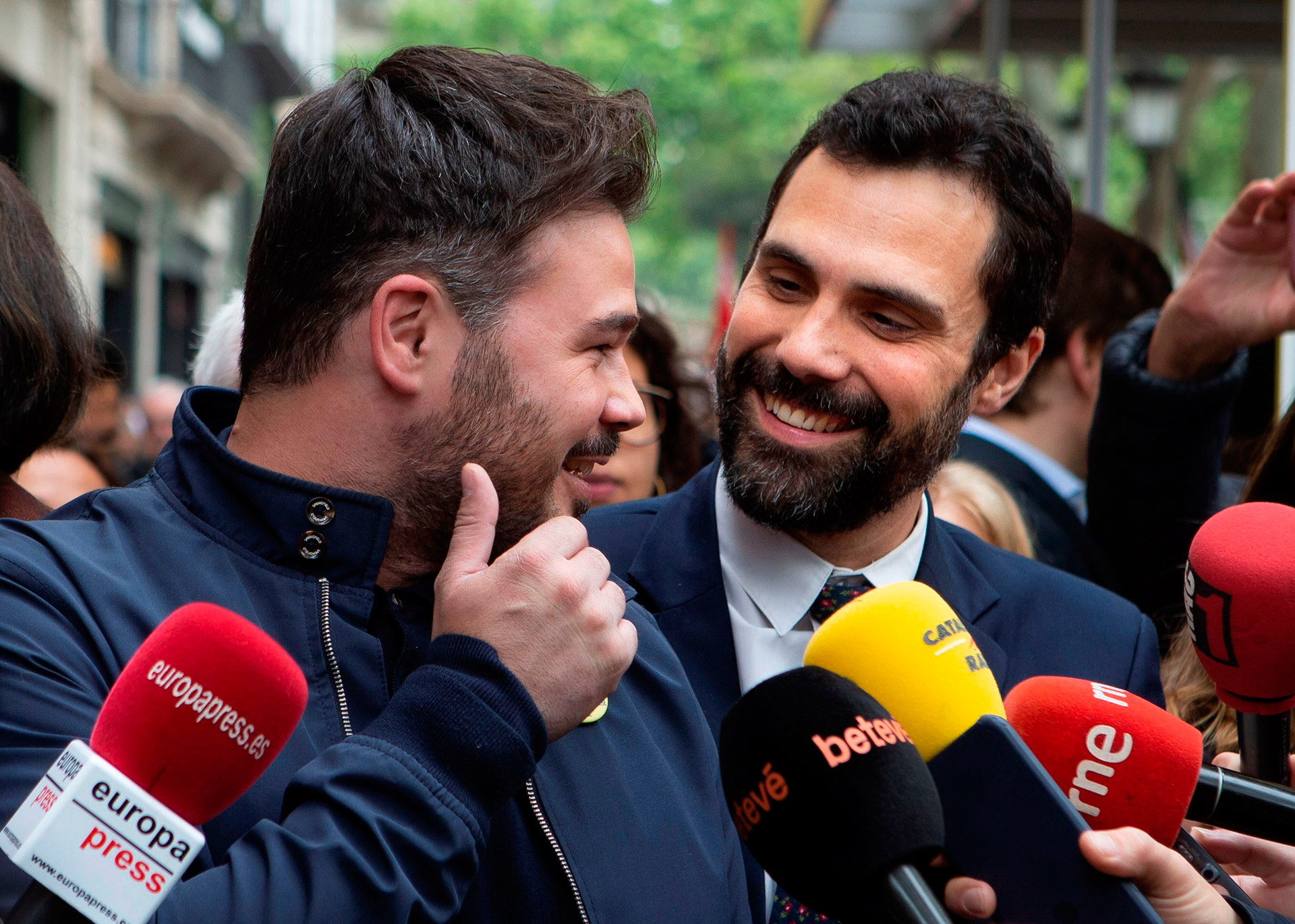 Mientras tanto, en el partido del fugado Carles Puigdemont han optado por tomar ellos la iniciativa y el presidente catalán escribió anoche unos "mensajes de cortesía" a Pedro Sánchez, según confirman en la Generalidad, para felicitarle por el resultado en las elecciones generales. Aprovechando la ocasión, Torra volvió a ofrecerse a Sánchez para empezar de cero y volverlo a intentar en una mesa de diálogo "sin condiciones". Estrategia de diálogo "sin líneas rojas" de la que se han desmarcado durante toda la campaña y que sin embargo a ERC sí le ha funcionado para poder doblarle en escaños en el Congreso de los Diputados.