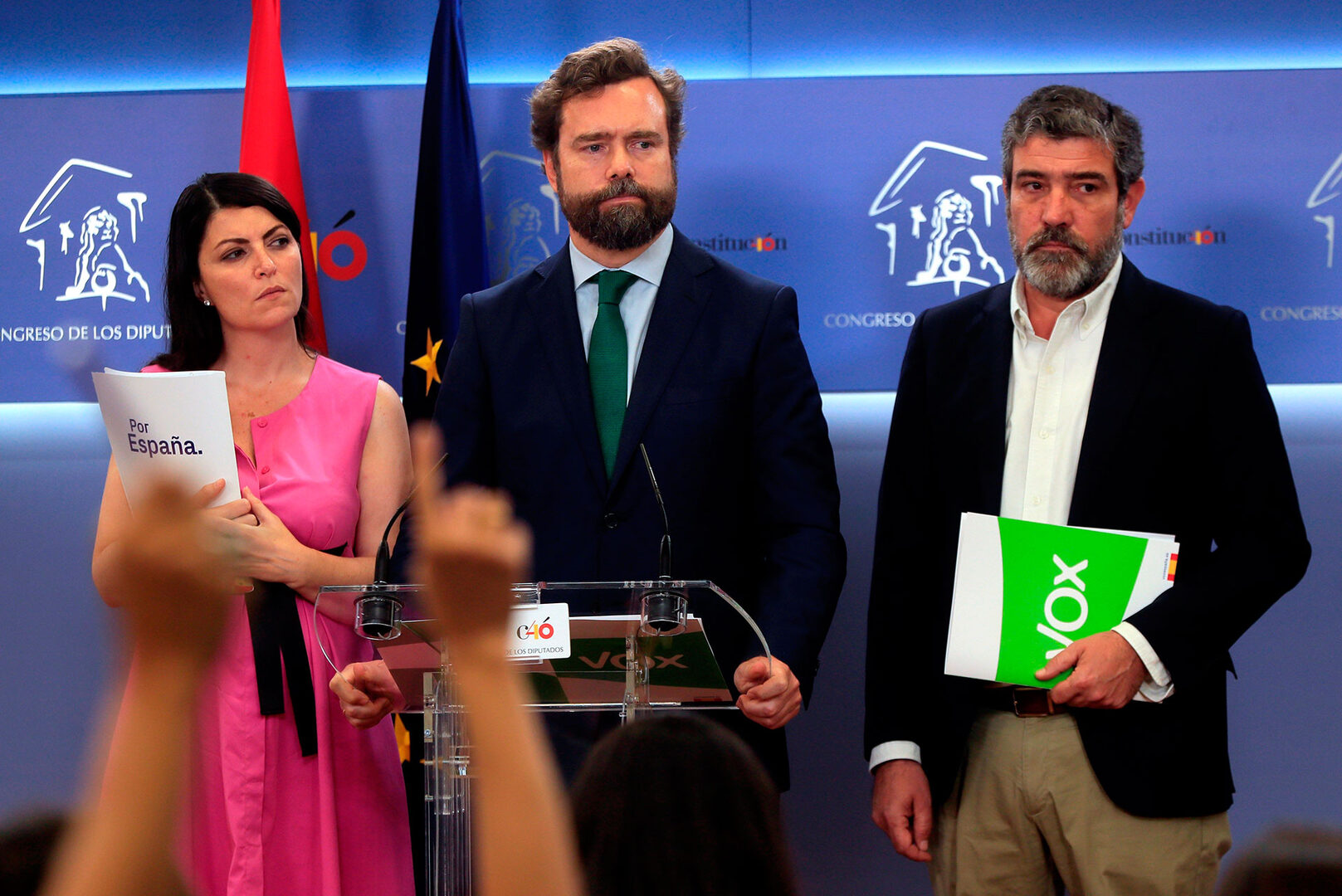 De cara a las futuras negociaciones, el portavoz parlamentario ha anunciado que cualquier acuerdo se hará público y ha ironizado con la posibilidad de firmarlo "ante notario" y "en francés" para garantizar su cumplimiento por parte del PP y de Cs. De esta forma ha criticado las directrices que, según han denunciado varias veces en Vox, recibe Albert Rivera de El Elíseo.