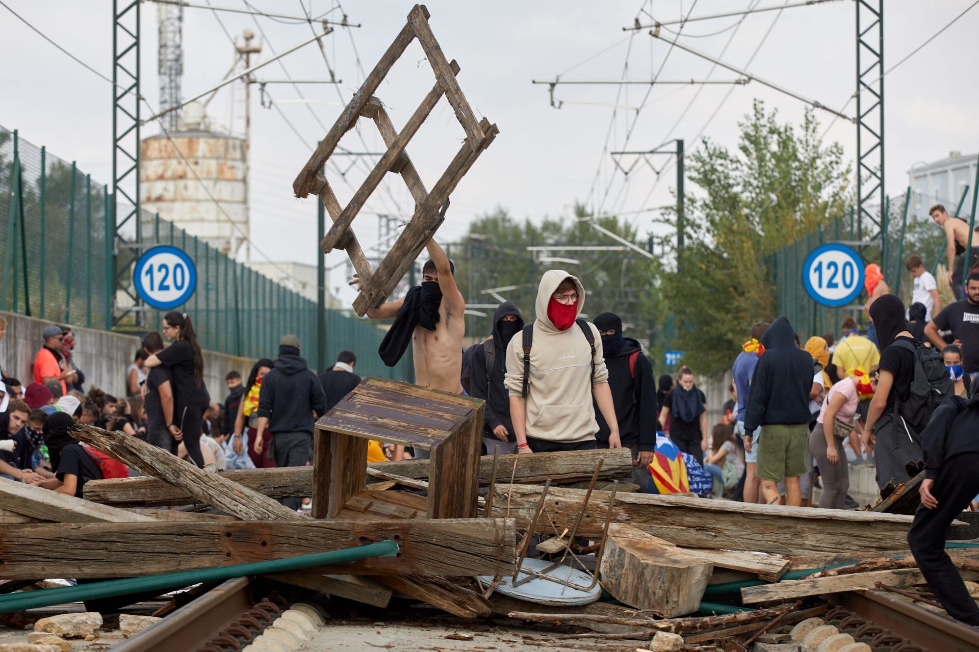 Un grupo de independentistas radicales corta las vías del AVE en Gerona.