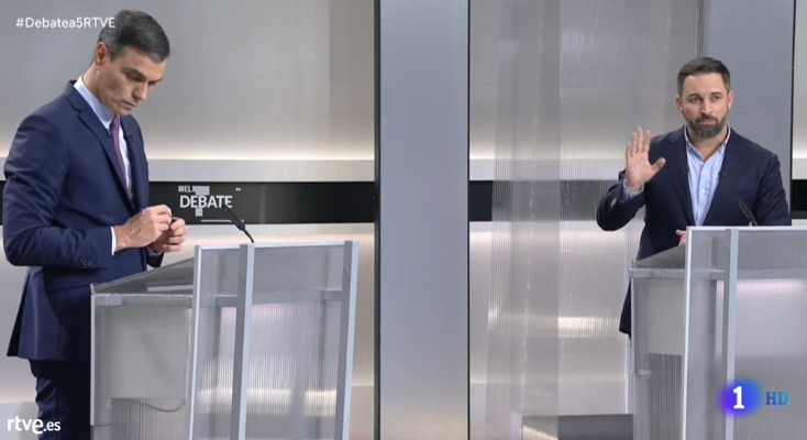 Abascal continuó diciendo: "Se saca el conejo de la chistera del enfrentamiento y le va a salir muy mal", dirigiéndose al candidato socialista, entrando así por primera vez durante el debate en el enfrentamiento directo y dejando atrás sus primeras intervenciones más contenidas.