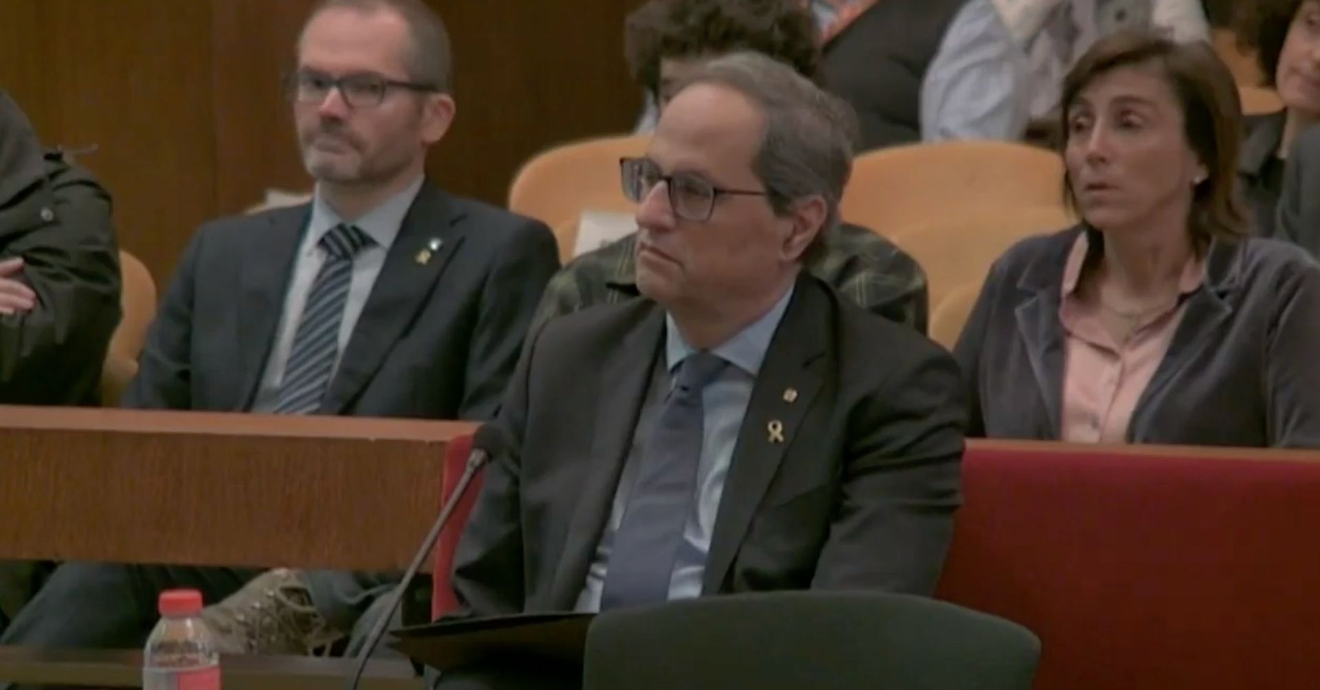 Antes que Torra, ha intervenido su abogada, Isabel Elbal, que ha trasladado la defensa al terreno político acusando a la Sala de "estar contaminada". La letrada ha centrado gran parte de su exposición en cargar contra los miembros del tribunal por sus manifestaciones públicas contrarias al proceso separatista, entre ellos, contra el presidente, Jesús María Barrientos. "Usted se ha pronunciado sobre el objeto de este proceso, se ha mostrado públicamente contrario a los lazos amarillos, a la exhibición de pancartas, a las esteladas. Esto es una anomalía democrática", a lo que el fiscal del TSJC, Francisco Bañeres, le ha respondido que "lo que no se puede pretender es que los jueces permanezcan en burbujas y no sean capaces de dar una opinión porque siempre podrá ser usado como fuente para revocar una acusación".
