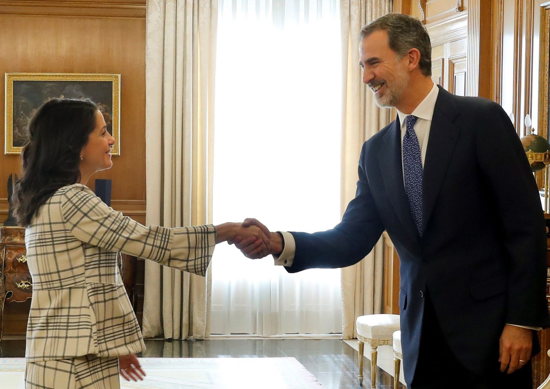 La portavoz de Ciudadanos en el Congreso, Inés Arrimadas, ha defendido este miércoles ante el Rey Felipe VI la propuesta de un pacto entre el PSOE, el PP y Cs no solo para investir a Pedro Sánchez como presidente del Gobierno, sino para ofrecer "estabilidad" a España.