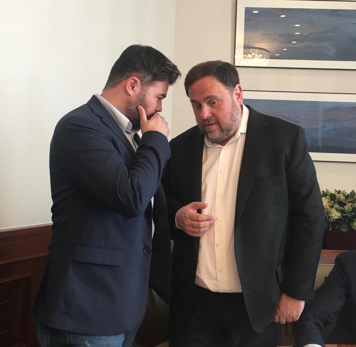 Como primera prueba, el que ERC haya luchado por conseguir la llamada de Moncloa – y respaldará a Torra en sus exigencias para elegir la hora – y de ahí que, el vicepresidente catalán, y hombre fuerte del partido, Pere Aragonès, pueda valorar si cederle el sitio en una futura mesa entre iguales. Este mismo viernes, en una entrevista en La Razón, el líder del partido, Oriol Junqueras, lanzaba un mensaje a sus socios de JxCAT confirmando la estrategia: " Creo que si se consigue un buen acuerdo en la investidura, también estará JxCAT, porque será un buen acuerdo para el país. Se deben priorizar los intereses del país, no intentar el desgaste partidista". De esta forma, ya no serían 13 las abstenciones que estarían en juego en esas conversaciones con el PSOE sino 21, dejando al margen los votos de la CUP.
