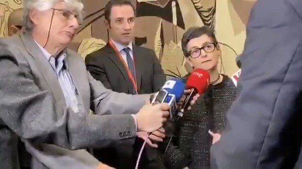 La ministra de Exteriores, González Laya, ha afirmado ante la prensa que “el señor Guaidó es dos cosas a la vez, presidente encargado y el líder de la oposición".