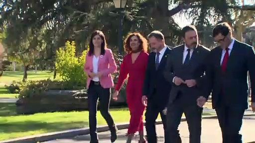 Imágenes del presidente Pedro Sánchez y sus ministros que han saludado a todos los miembros de la delegación catalana.