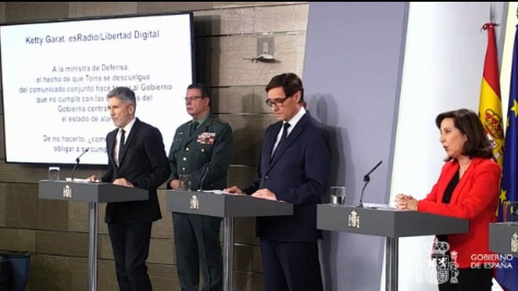 La ministra de Defensa, Margarita Robles, ha censurado la actitud de Quim Torra, al negarse a firmar el comunicado conjunto de las Comunidades con el Gobierno en la lucha contra el Covid-19.