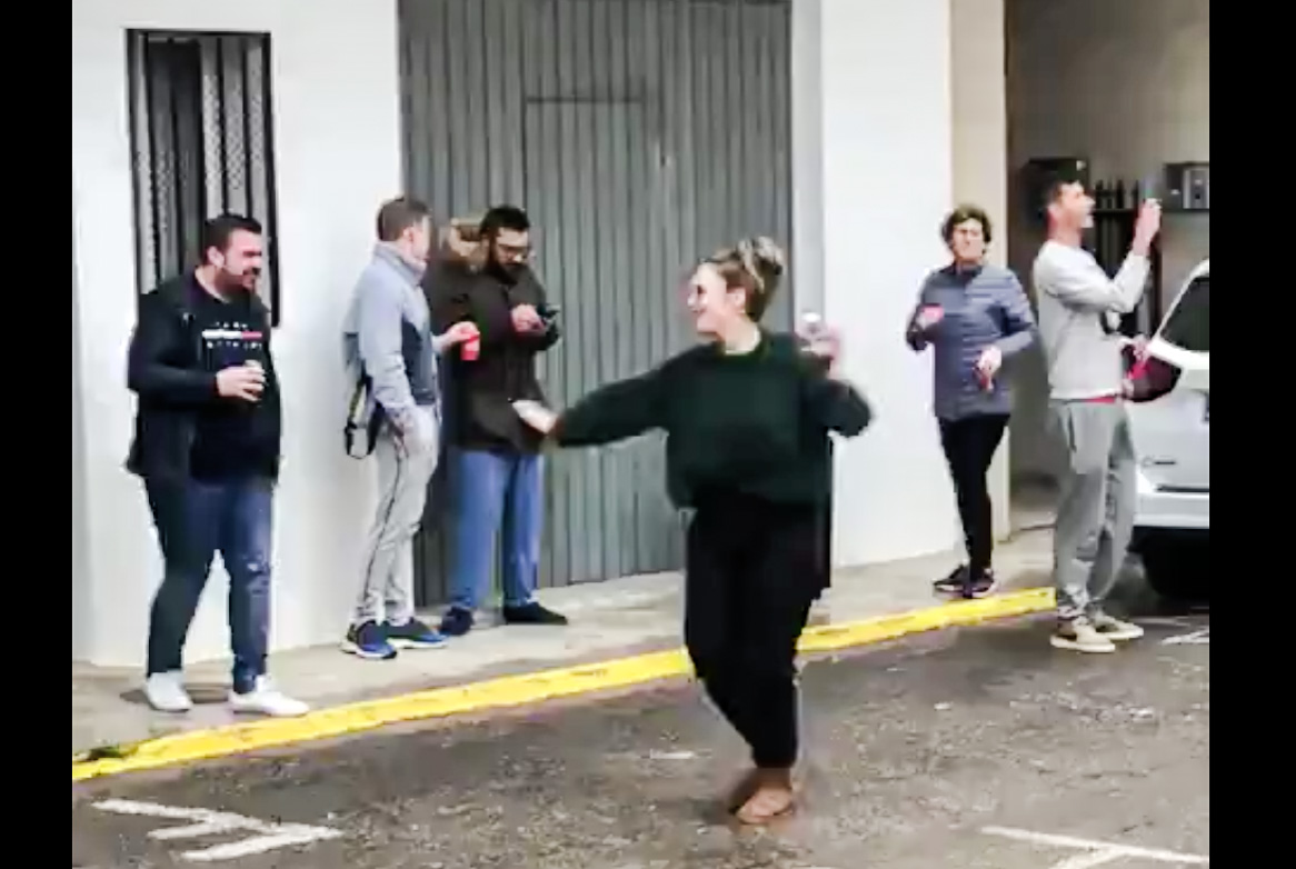 En el vídeo aparece, de fondo, la alcaldesa, que lleva una lata de cerveza en la mano, que en un primer momento parece dudar llamar la atención a los jóvenes, pero que finalmente se une a la fiesta, mientras varios ciudadanos contemplan la escena desde los balcones de sus domicilios.