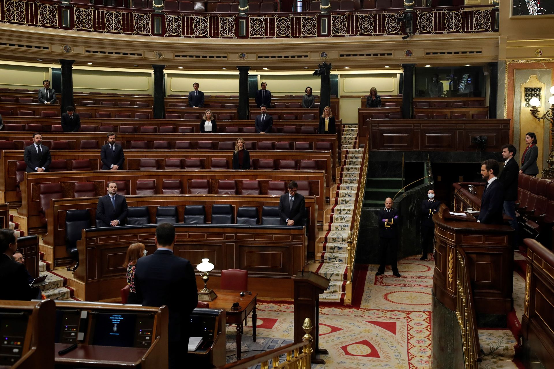 El líder de la oposición, Pablo Casado, ha solicitado "que la Cámara guarde un minuto de silencio" por las víctimas mortales del coronavirus. El Parlamento así lo hace.