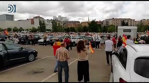Manifestación en coche en León promovida por Vox, en el parking de la delegación territorial de la junta de Castilla y León en León donde ha terminado,
